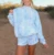 Individuelles Zweiteiliges Set für Damen mit Sweatshirt mit Stehkragen und Shorts in Blauem Camo-Batikmuster, Lässiges Lounge-Outfit, Sommer-Streetwear-Trainingsanzug